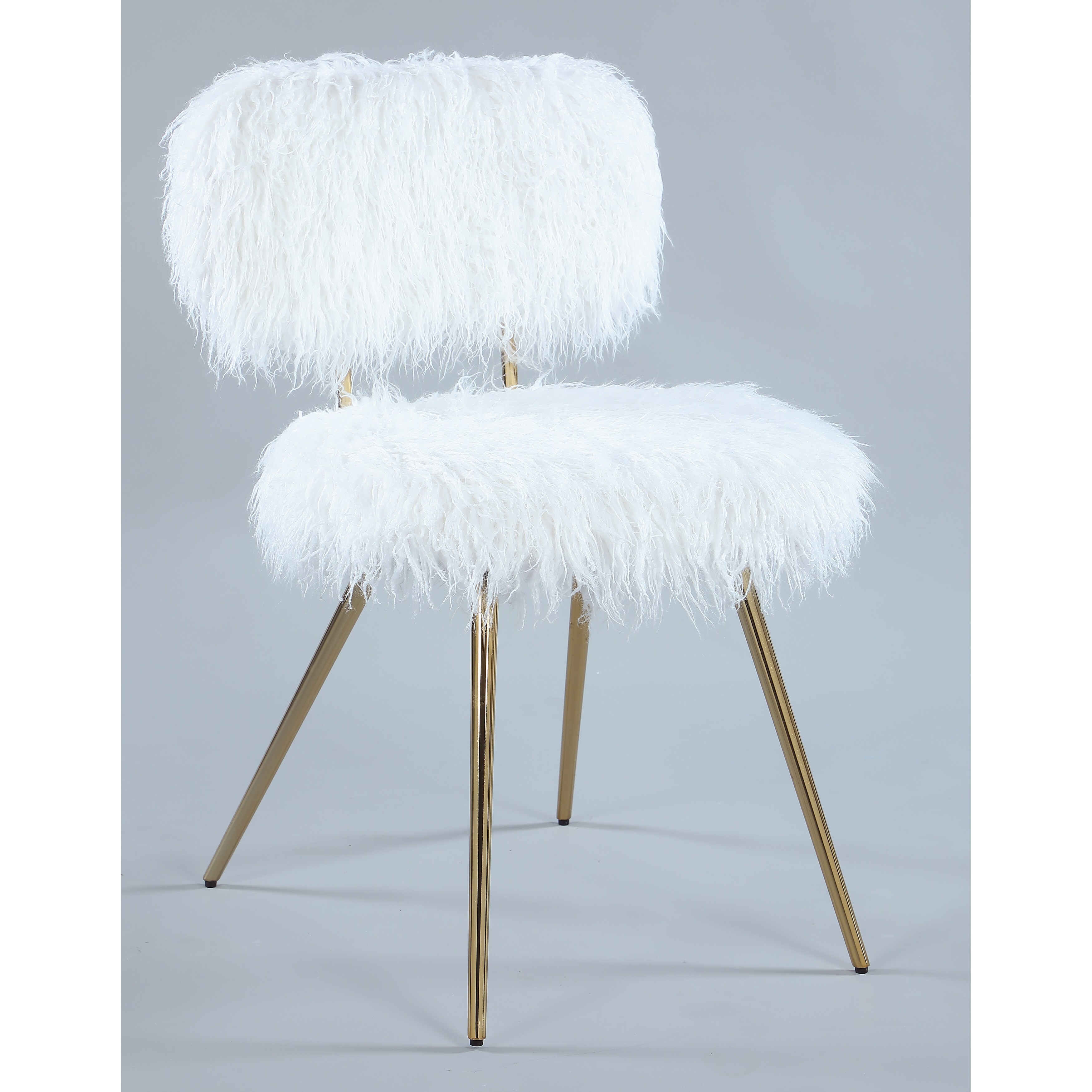 Meridian Furniture 508 Tiffany Modern Plush White Fur Stainless Gold Legs Chair 2pcs 508fur White Set 2
